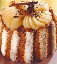 Décorez votre charlotte avec les lamelles de poire, avant de servir.